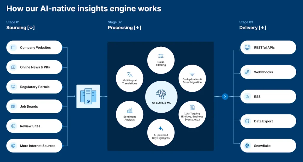 Within this organization, analysts operate a procurement analytics platform to support the supply chain advisory practice. They aimed to integrate an automated supplier intelligence layer that tracked multiple suppliers, organized news by procurement category, and provided clean data for their analytics workflow, which could be distributed to clients. The platform outputs produced were used by clients for decision-making. This made relevance, freshness, and correct categorization of intelligence necessary requirements that couldn’t be compromised.