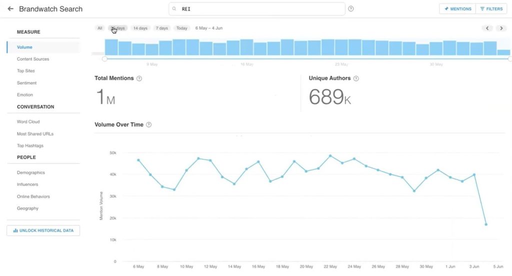 - Easy self-serve option to add custom sources and historical data going back up to 2 years, included by default at no additional cost or restrictions.