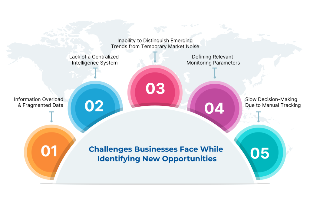 While businesses recognize the need to capture market opportunities, they often struggle due to the following challenges: